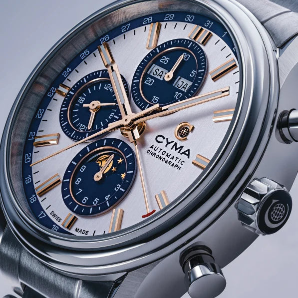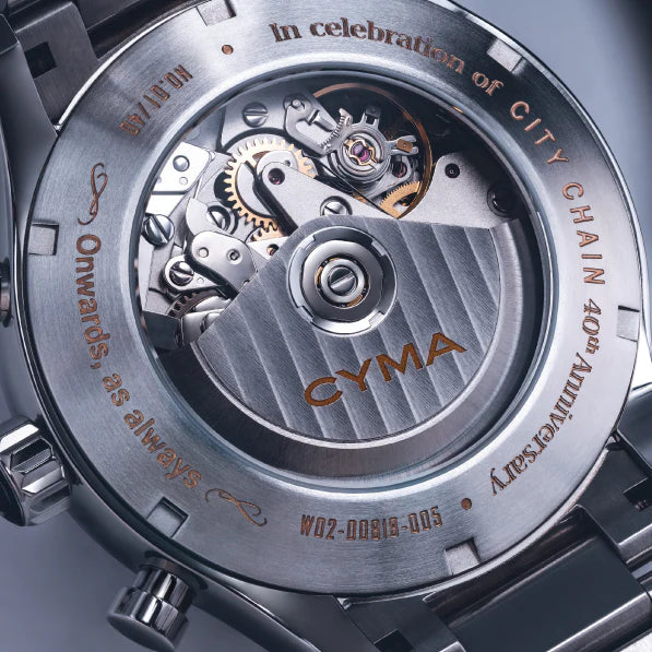 The Cyma W02-00818-005 Grand Maestro 40th Anniversary Chess Limited Edition Automatic Chronograph Men Watch celebrates City Chain’s 40 years of horological excellence. Inspired by the strategy and elegance of chess, this Swiss-made timepiece features a 43.5mm 316L stainless steel case with a curved dual-tier bezel, smoky ocean blue dial, and sapphire crystal with anti-reflective coating. Powered by the Swiss ETA 7751 automatic movement, it offers a 48-hour power reserve and intricate complications including chronograph, day, month, date, 24-hour display, and moon phase indicator. Limited to just 40 pieces worldwide, the caseback bears a special “City Chain 40th Anniversary” engraving — a timeless tribute to precision, craftsmanship, and enduring innovation.