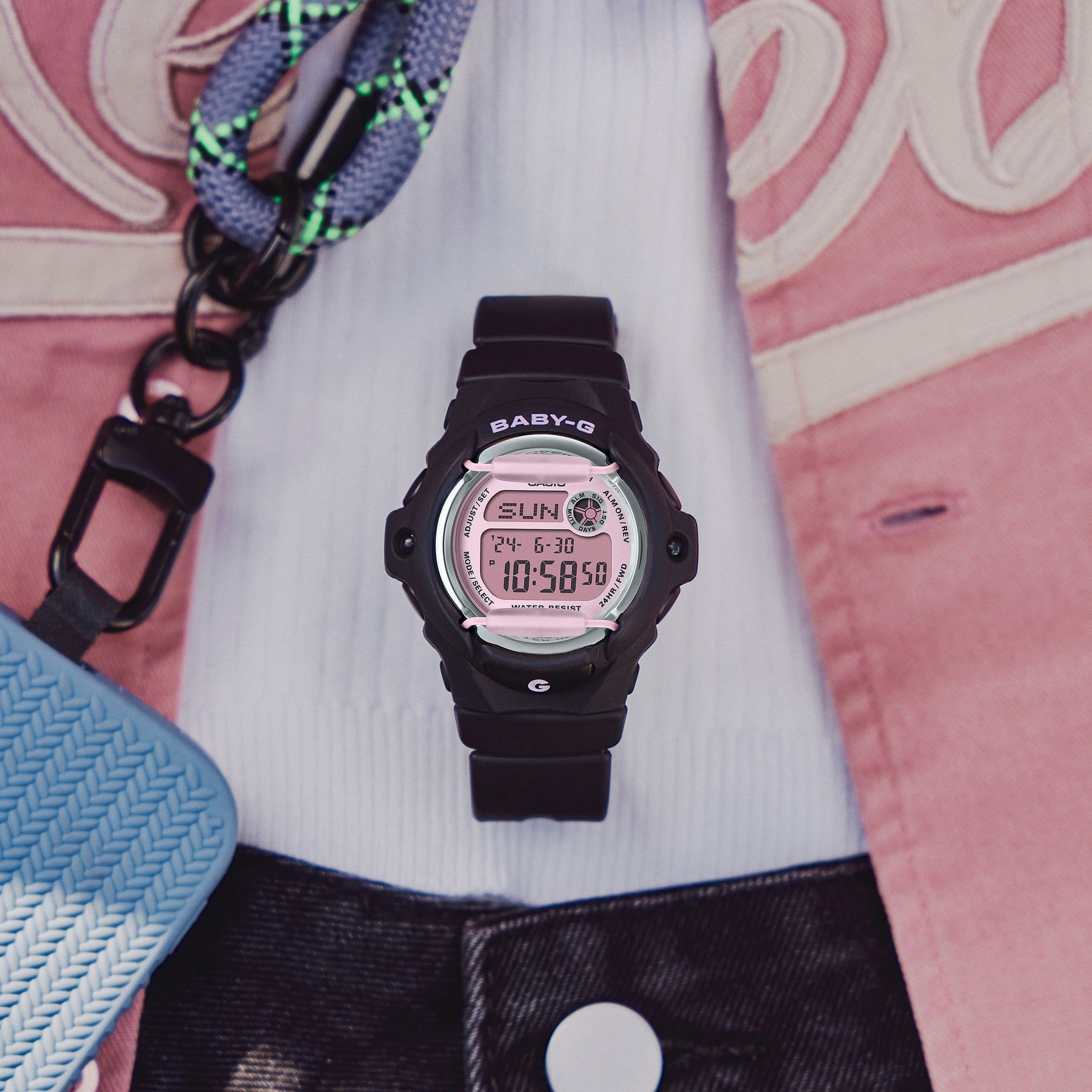 The Casio Baby-G BG-169U-1CDR Digital Women Watch combines playful style with powerful performance. Designed with a protective front guard for impact resistance, this watch is built tough with shock resistance and 200-meter water resistance. The 45.9mm resin and stainless steel case houses a host of practical features including world time, 1/100-second stopwatch, countdown timer, five alarms, and LED backlight. It also offers Telememo storage for up to 25 contacts and a day counter function. With a slim resin band and lightweight 43g design, it’s perfect for active, everyday wear.