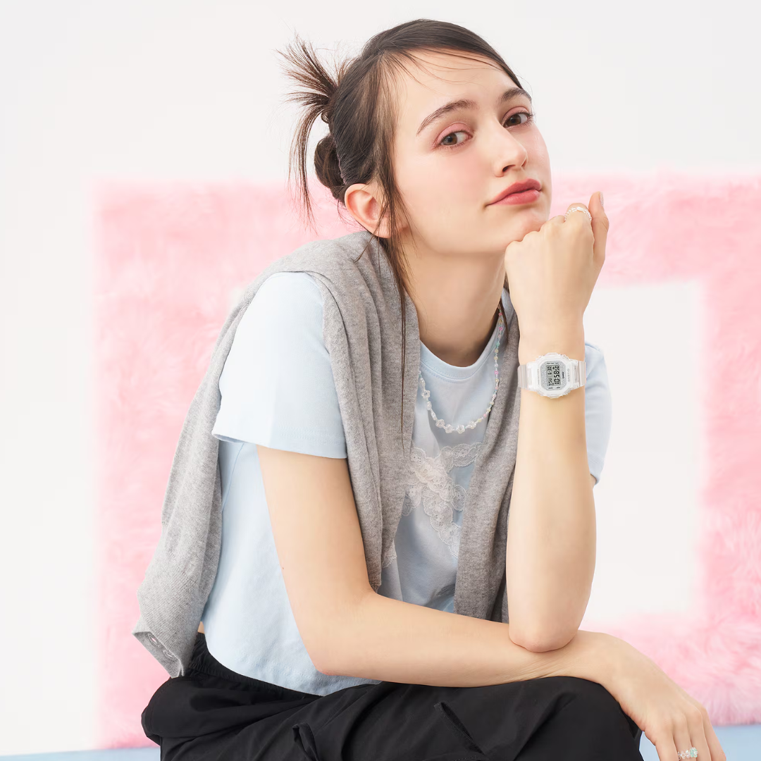 The Casio Baby-G BGD-565GC-7DR Standard Digital Women Watch sparkles with a glittery dial and translucent resin band for a fresh, luxe style. Keeping the compact angular shape of the BGD-565, this timepiece pairs shimmering design with everyday toughness. Shock-resistant and 100-meter water resistant, it’s equipped with practical functions like stopwatch, countdown timer, alarms, flash alert, and LED backlight—perfect for active women who want both performance and sparkle.