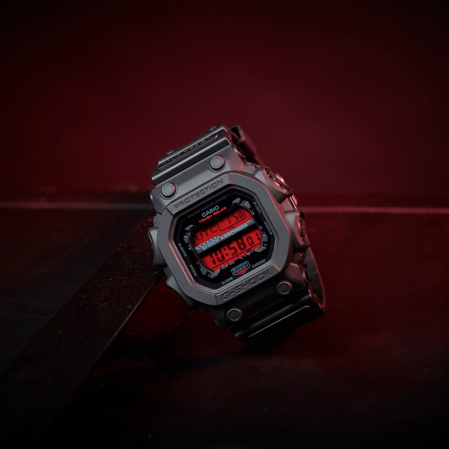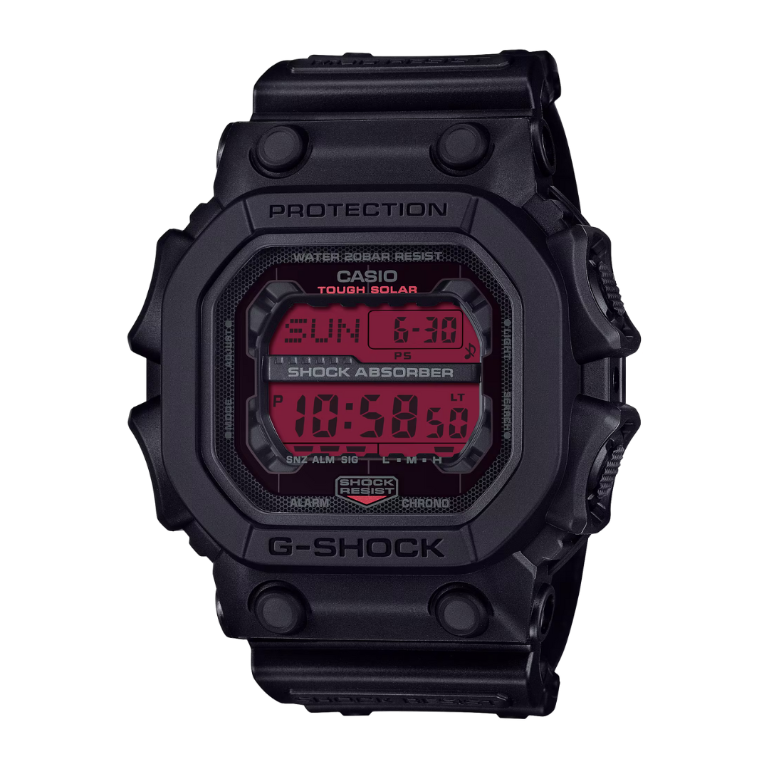 The Casio G-Shock GX-56BBR-1DR Special Color Black Men Watch takes toughness to the next level with its daring black-and-red design. Featuring a bold oversized case, the deep black bezel and band are contrasted with a striking red LCD for enhanced visibility and a fearless look. Built to endure extreme conditions, it offers shock resistance, mud resistance, and 200-metre water resistance. Powered by Tough Solar with up to 27 months of power reserve, it also includes world time, stopwatch, countdown timer, 5 alarms, and a Super Illuminator LED backlight. Designed for those who want to make a strong statement, this watch blends rugged durability with distinctive style.