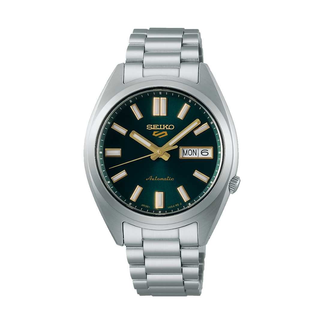 The Seiko 5 Sports SRPL57K1 SNXS Series Automatic Men Watch blends vintage-inspired design with modern reliability. Featuring a 37.4mm stainless steel case and bracelet, it showcases a striking green dial with Lumibrite hands and markers for enhanced readability. Powered by the 4R36 automatic calibre with hand-winding capability, 24 jewels, and a 41-hour power reserve, this watch offers dependable performance. With curved Hardlex crystal, day-date display, see-through case back, and 100-meter water resistance, it is a versatile everyday companion that pays tribute to Seiko’s heritage.
