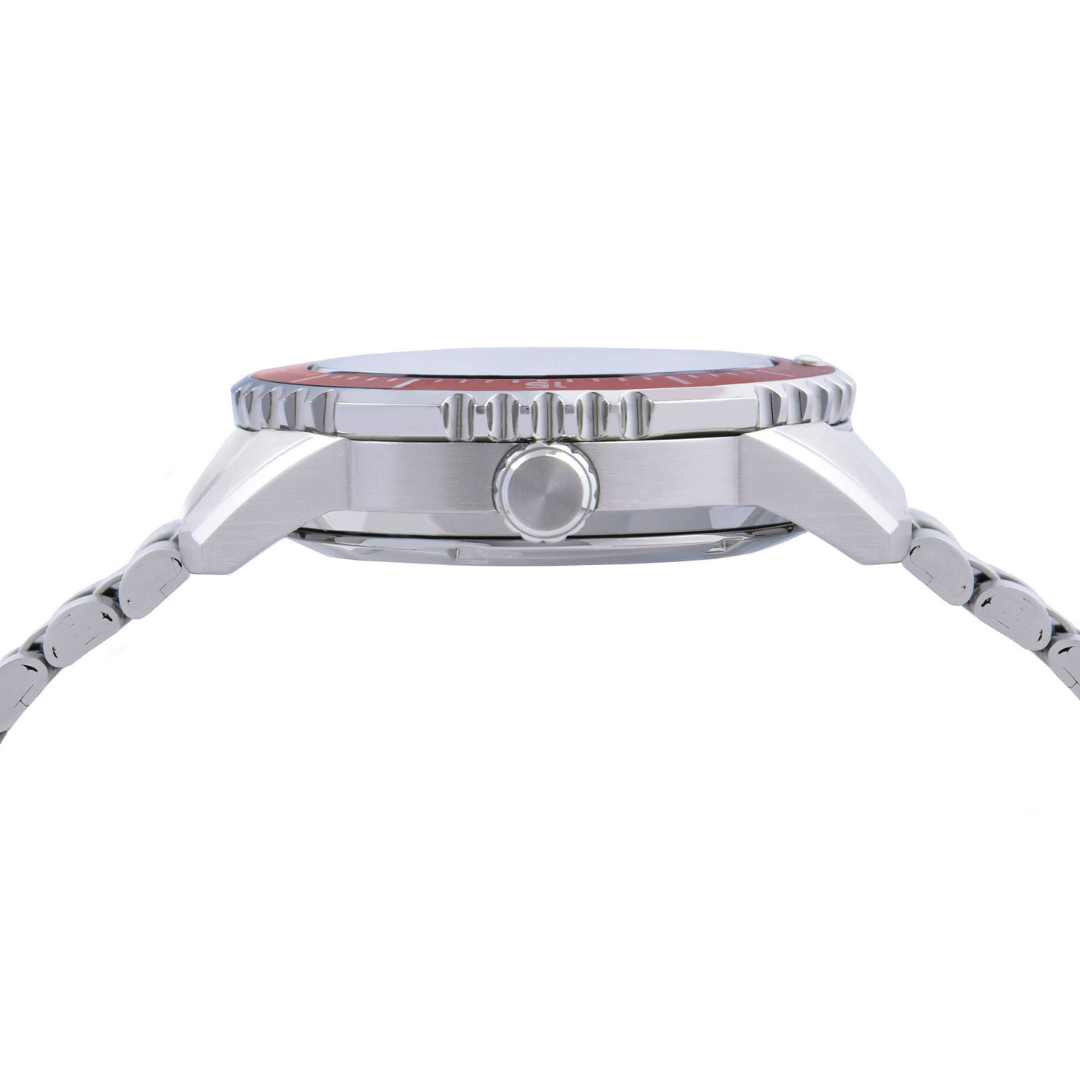 The Alba AL4745X Mechanical Stainless Steel Men Watch combines classic mechanical craftsmanship with modern style. Featuring a bold 44.5mm stainless steel case, black dial, and see-through screw back, this automatic watch delivers strength and sophistication. Equipped with a two-way rotating bezel, date and day display, and 10-bar water resistance, it’s built for both everyday wear and adventure. Lumibrite-coated hands and indexes ensure clear visibility in all conditions.
