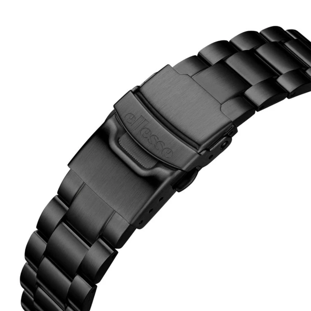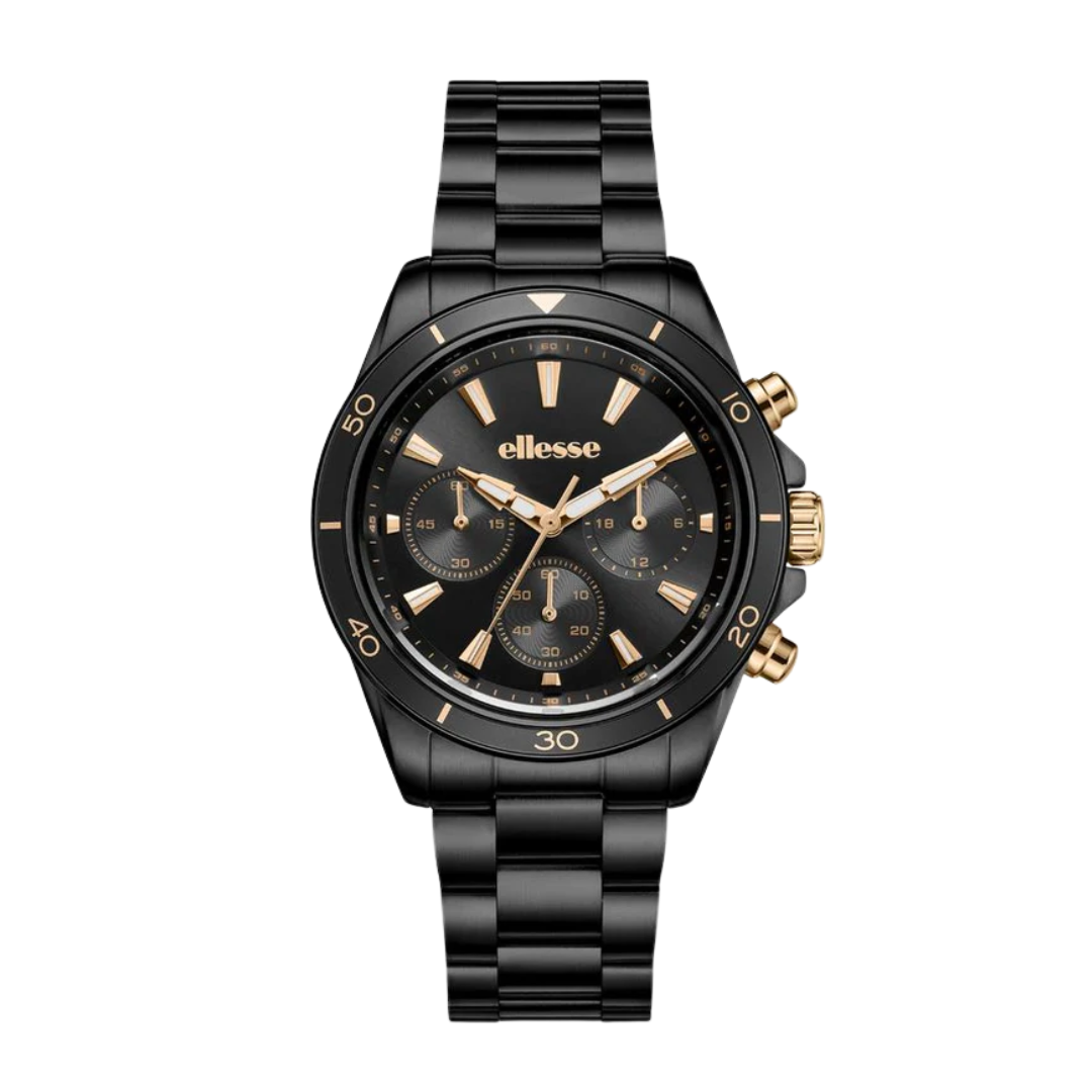 The Ellesse Leo Chronograph combines Italian sport-inspired design with precision timekeeping. This men's watch features a bold black dial housed in a 40mm stainless steel case, perfect for both everyday wear and active lifestyles.