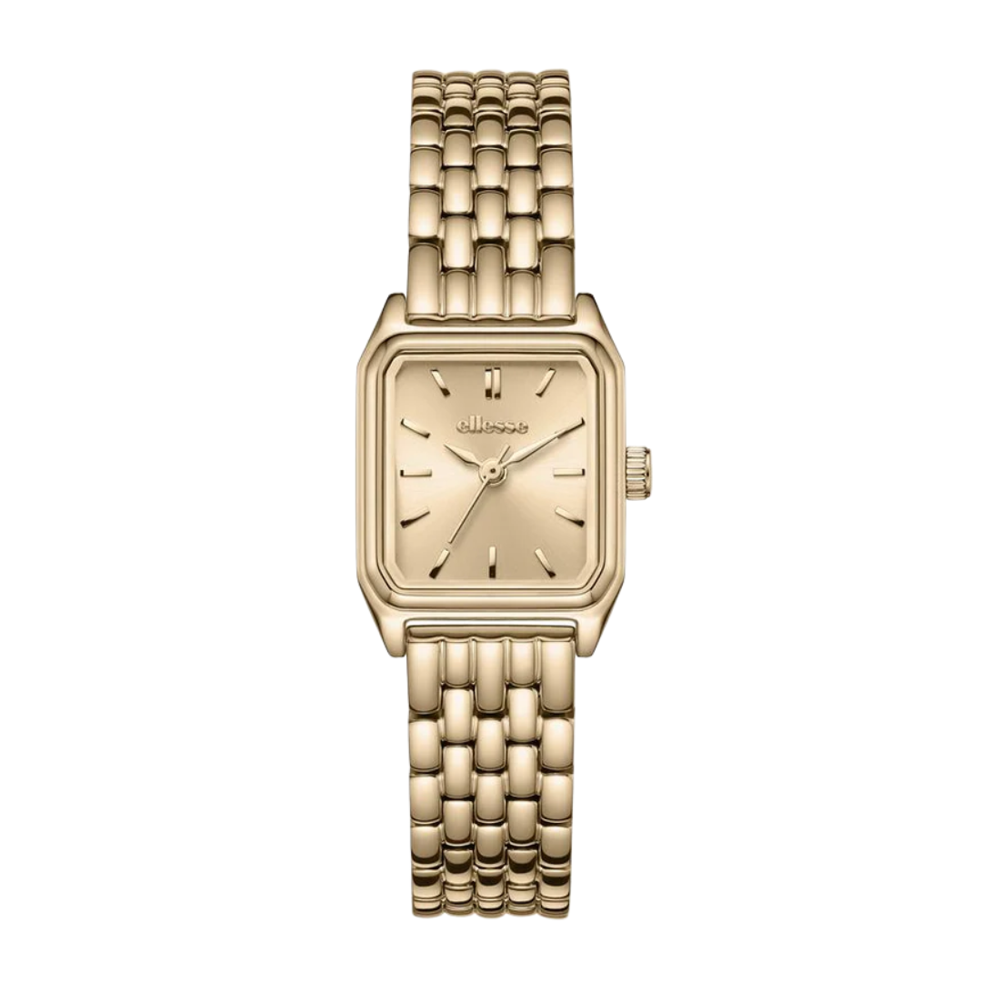 The Ellesse Tiana redefines feminine elegance with its distinctive square case design. This women's watch features a luxurious light rose gold finish that complements any outfit, from office attire to evening wear.