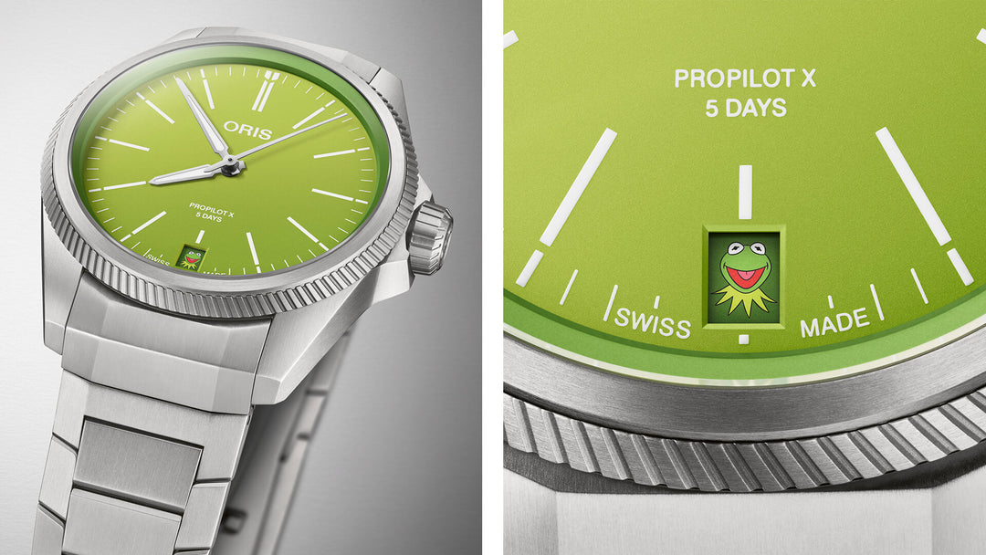 The ProPilot X Kermit Edition has a green dial, naturally, but its most entertaining feature appears on the first of every month, or ‘Kermit Day’, when Kermit’s cheery face pops into the date window.