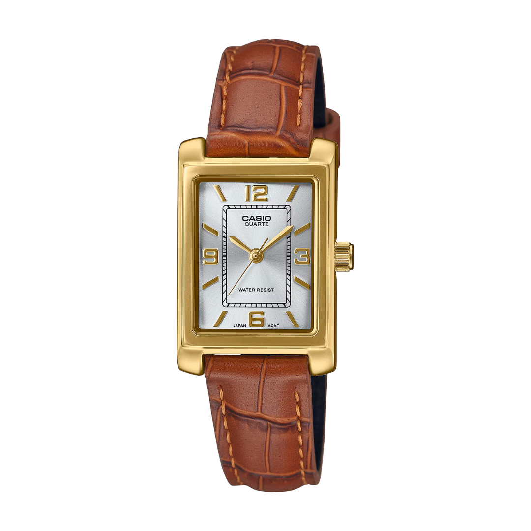 The Casio LTP-1234GLL-7ADF Analog Women Watch blends timeless elegance with everyday practicality. Featuring a refined tonneau-shaped gold-tone case and a genuine leather strap, this classic design is both lightweight and comfortable at just 25g. Built with mineral glass and daily water resistance, it’s reliable for everyday activities. Powered by a quartz movement with a 3-year battery life, it offers precise timekeeping with a simple three-hand display. A graceful accessory that complements both casual and formal wear.