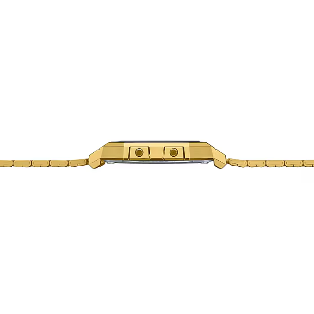 The CASIO A700WG-9ADF Digital Men Watch from the Vintage Collection brings sleek retro style to your wrist. Its ultra-slim gold-tone case and stainless steel band create a refined, timeless look. Designed for everyday function, it features a 1/100-second stopwatch, daily alarm, LED backlight, and water resistance. A perfect balance of nostalgia and practicality, this vintage-inspired piece is both stylish and reliable.