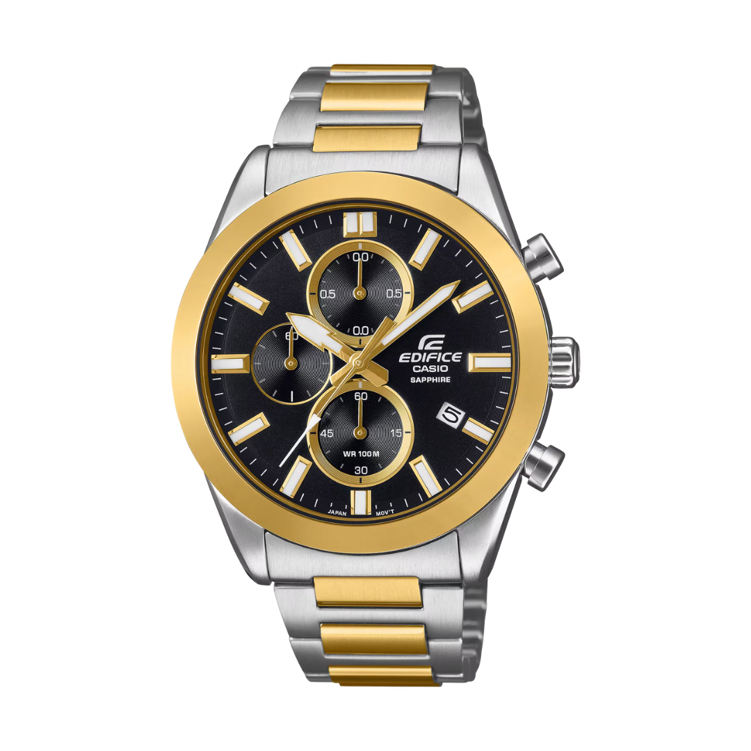 The EFB-710SG-1AVUDF delivers refined chronograph performance with sleek black dial and gold accents creating premium sophisticated styling. The sapphire crystal ensures superior scratch-resistant lasting clarity, while the 3-year battery life provides extended reliable performance. The 48mm case offers substantial wrist presence, and the one-touch clasp ensures convenient operation. Perfect for professionals, style-conscious individuals, and business executives who want black and gold distinction, sapphire quality, and chronograph precision for elevated everyday wear.