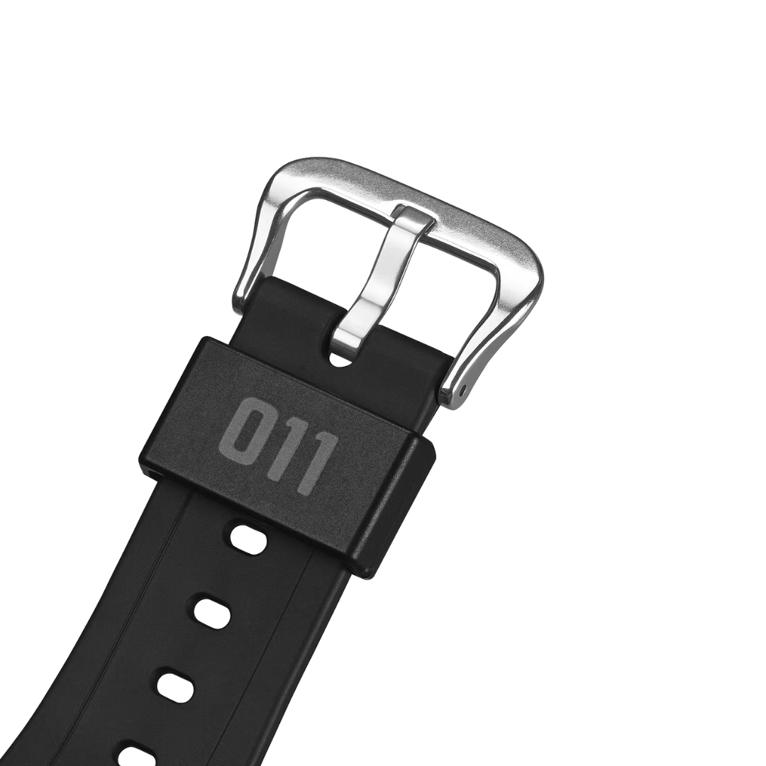 The red backlight mirrors the show’s signature color palette, casting an atmospheric glow reminiscent of its most intense moments. On the band loop, “011” is printed — a tribute to Eleven, one of the show’s most powerful and beloved characters.