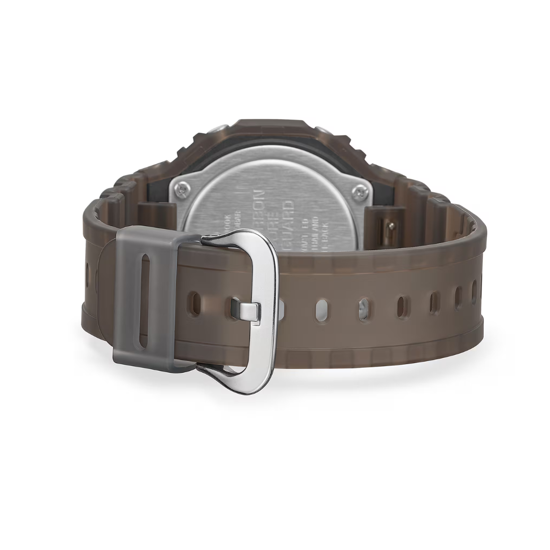 Experience nightlife energy with the Casio G-Shock GA-2100K-5ADR, featuring brown resin strap with translucent matte finish, neon accent details, and piano black surface finish inspired by music-driven culture. This analog-digital CasiOak combines Carbon Core Guard structure with dual LED Super Illuminator—perfect for those who want late-night music scene aesthetics with G-SHOCK shock-resistant durability.