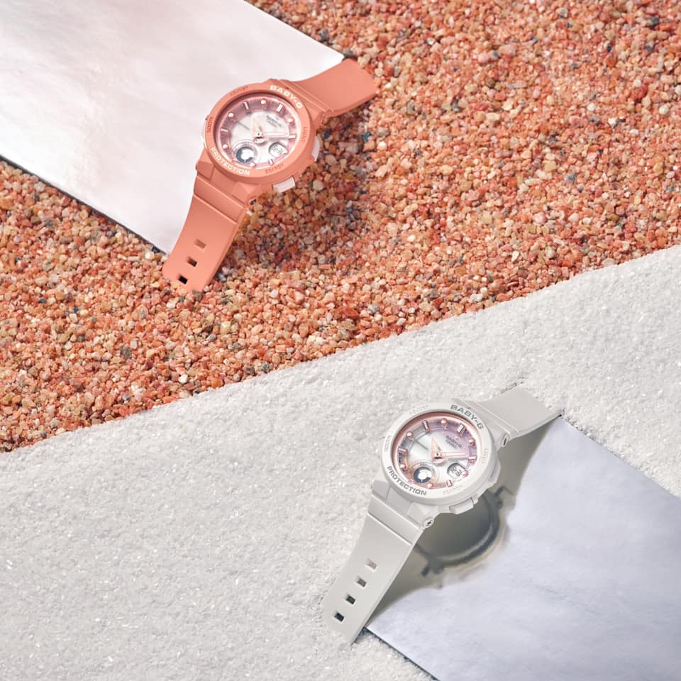 Casio’s signature range of ladies’ watches comes in the form of the Casio Baby-G, a more feminine counterpart to the G-Shock. The Baby-G watches feature a proportionate watchface and band that, though slimmer than the G-Shock, remain solid and hardy without compromising precision or quality. The Baby-G has a chic charm and comes in shades such as rose gold, white, lavender, black, and more – making it a modern statement piece that can be as loud or as subtle as the wearer desires. From street fashion to office chic, the Baby-G Casio ladies’ watch can travel with you from work to vibrant weekends. The tough and durable exterior means your night time catch-ups won’t damage your favourite watch, while the brand’s dedication to precision ensures you will turn up to social and professional meetings exactly when you want to.