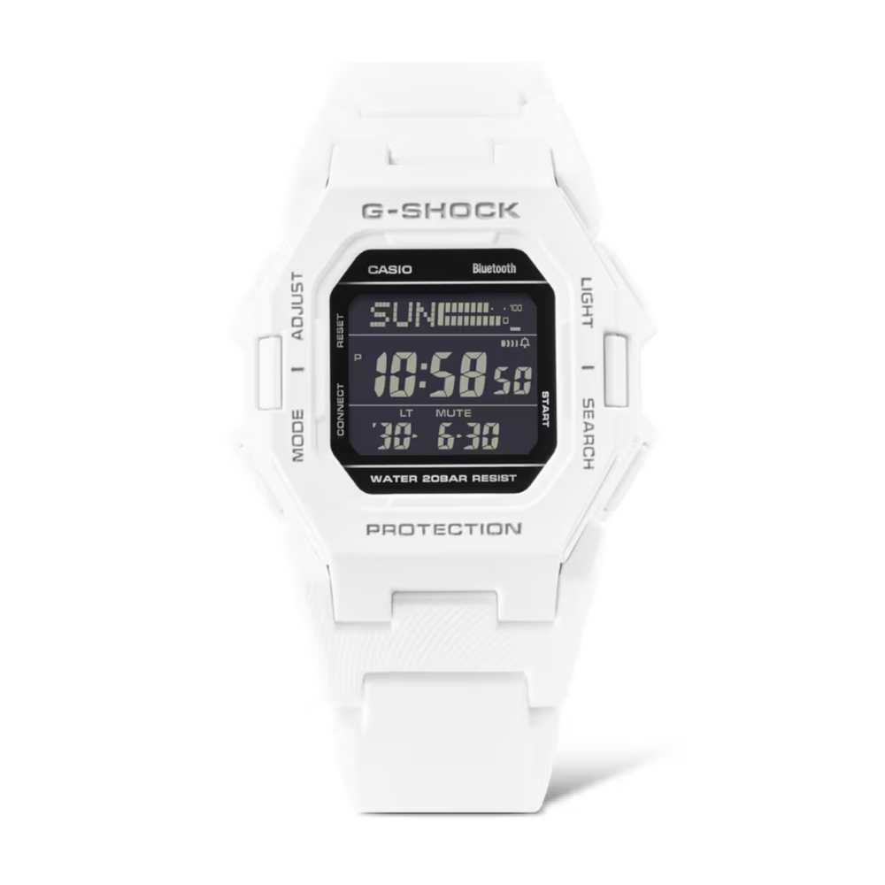 The Casio G-Shock GD-B500-7DR Standard Digital White Watch combines a compact build with futuristic minimalist design. With a slim 46.3mm case and lightweight 45g profile, this model is smaller than past G-Shocks yet packed with advanced features. Equipped with Bluetooth smartphone connectivity and step tracker, it supports auto time adjustment, activity tracking, and stopwatch data transfer via the CASIO WATCHES app. Shock-resistant, water-resistant up to 200 meters, and finished in versatile white, it includes dual time, 1/100-second stopwatch, countdown timer, 5 alarms, and Super Illuminator LED backlight—making it stylish, functional, and perfect for active lifestyles.