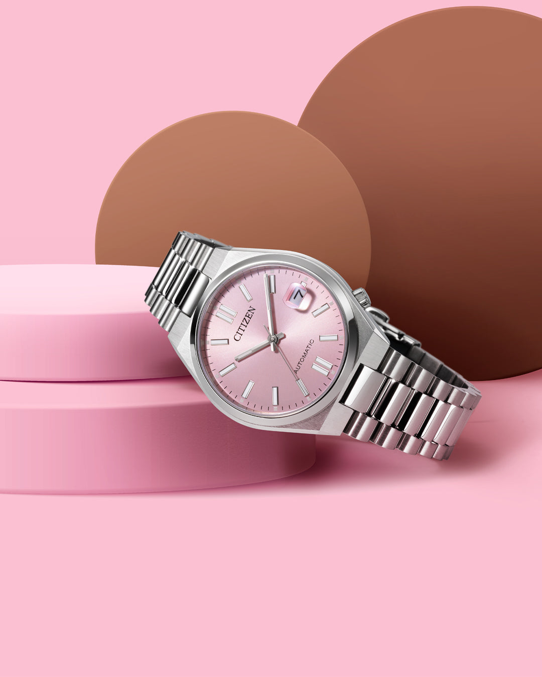 The NJ0200-50Z delivers classic mechanical watchmaking with Citizen's legendary reliability and impressive 42-hour power reserve providing extended running time between wears. The Caliber 8210 automatic movement with 21 jewels offers the satisfaction of mechanical precision without maintenance headaches, while the integrated bracelet design creates seamless, sophisticated aesthetics typically found in higher-priced timepieces. The distinctive pink dial makes a bold fashion statement rarely seen in mechanical watches, and the sapphire crystal provides superior scratch resistance and clarity compared to mineral glass. The transparent case back allows you to view the automatic movement in action, and the compact 37mm case size provides refined proportions that work beautifully on any wrist. Perfect for watch enthusiasts who appreciate mechanical movements, fashion-forward buyers seeking distinctive style, everyday wear enthusiasts who value timeless design, and gift-givers celebrating milestones who want Japanese quality, sapphire crystal protection, automatic movement innovation, and refined integrated bracelet design from the Tsuyosa collection.