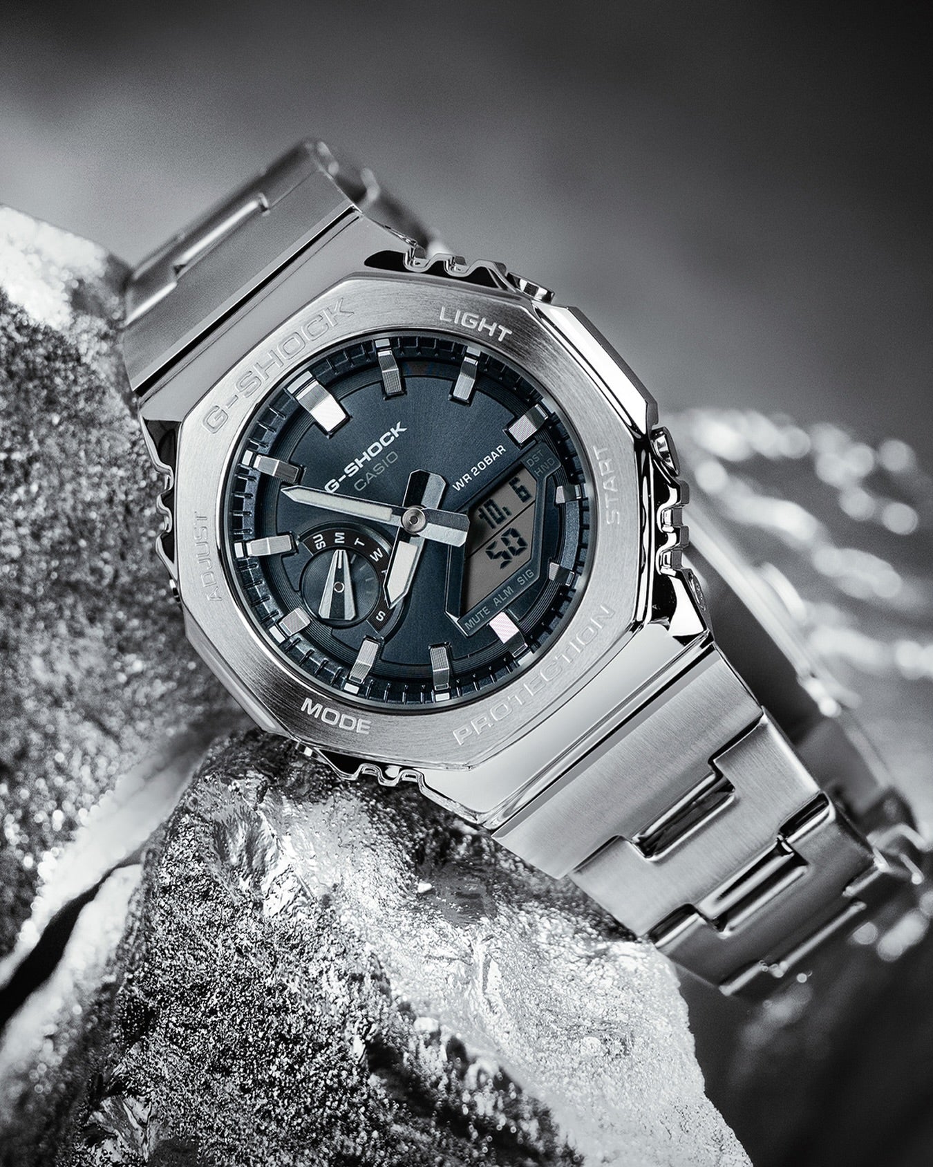 The Casio G-Shock GM-2110D-8ADR analog-digital men’s watch blends rugged performance with sleek metallic sophistication. Encased in a stainless steel and resin hybrid design, it features a robust shock-resistant structure and 200-meter water resistance, making it a trusted companion for active lifestyles.