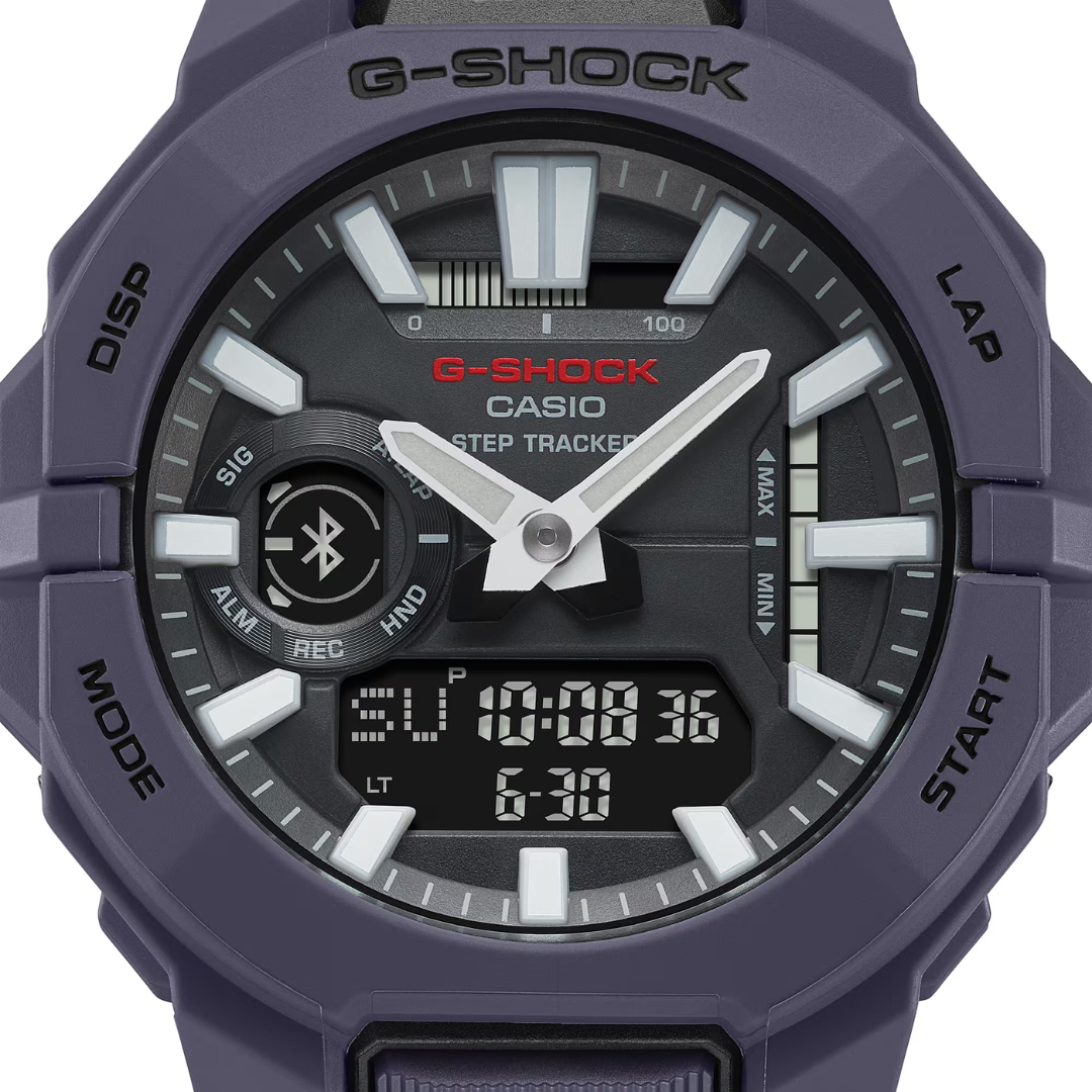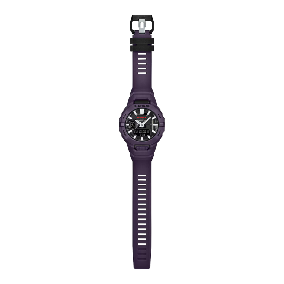 Elevate your training with the Casio G-SHOCK G-SQUAD GBA-950-2ADR, a high-performance sports watch built for style, durability, and fitness tracking. Designed with origami-inspired ergonomic curves for better wrist fit, this blue model features a carbon-reinforced case and a flexible bio-based resin band. Track steps, distance, calories, and pace with smartphone-linked data via Bluetooth®. Its auto lap, interval timer, and activity history make it a true training partner, while the bold design and Super Illuminator lighting make it a standout on and off the track.