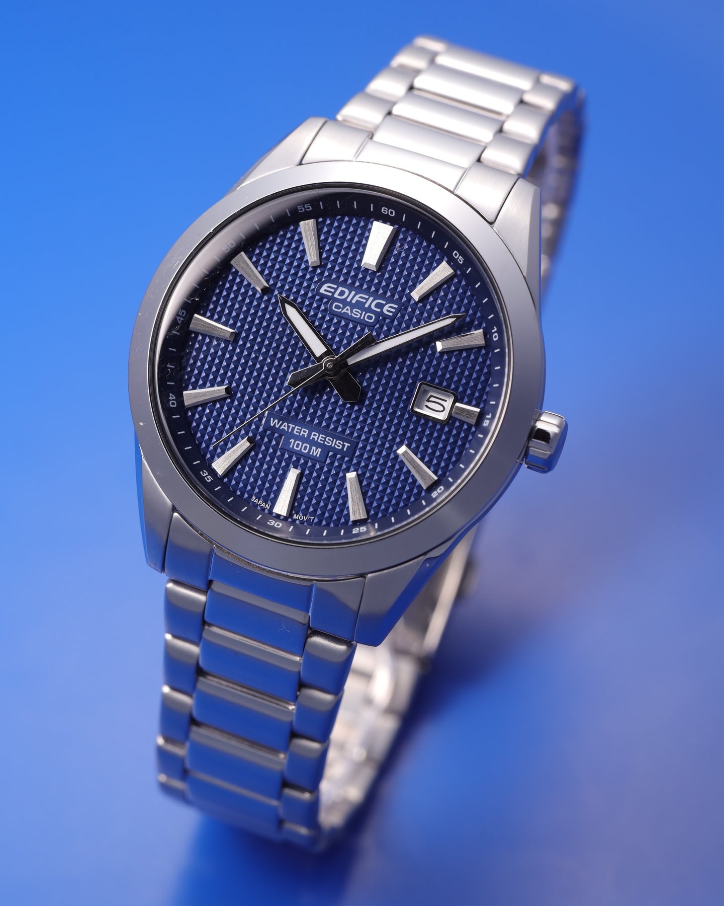 The Casio Edifice EFV-160D-2AVDF 3-Hand Analog Men Watch combines modern design with everyday reliability. Featuring a sleek 40mm stainless steel case, deep blue dial, and spherical mineral glass, this timepiece delivers clarity and durability. With 100-meter water resistance, date display, and precise quartz movement, it’s a versatile watch suited for both work and casual wear.