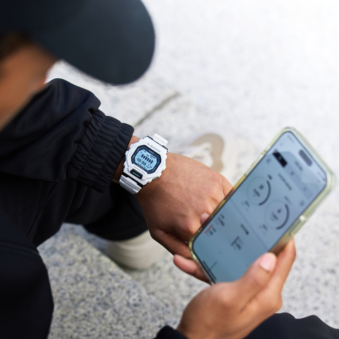 Stay fit, stay connected. The Casio G-Shock GBD-200-7DR from the G-Squad series combines tough G-Shock durability with advanced sports functionality. Designed for active lifestyles, this watch offers Bluetooth connectivity, training data tracking, and smartphone notifications, all in a lightweight resin case weighing just 58g.