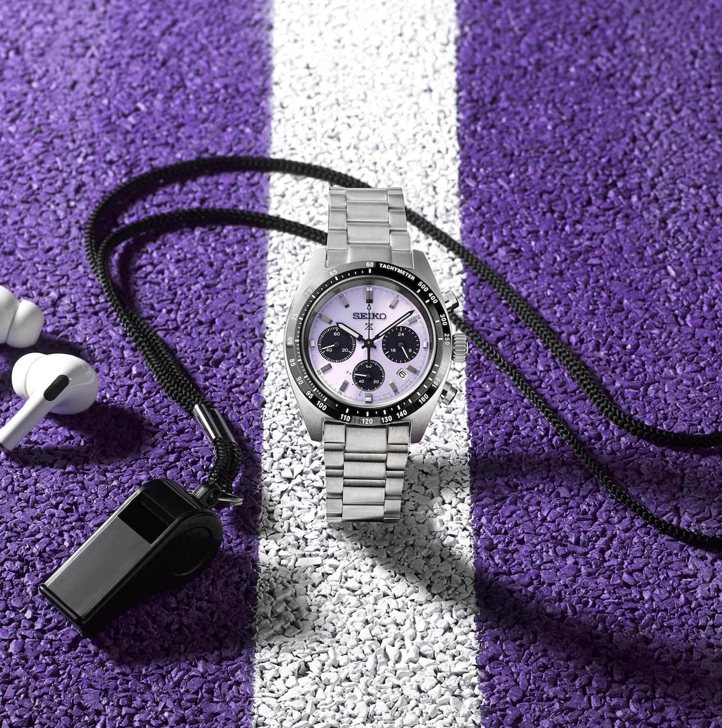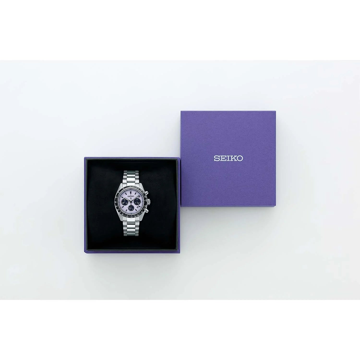 Seiko Prospex Speedtimer Solar Chronograph SSC955P1 celebrates the 2025 World Athletics Championships in Tokyo — the 19th time Seiko serves as the official timekeeper. Limited to 6,000 pieces, this commemorative watch features a stunning sunray dial in “Edo purple,” paying homage to Tokyo’s historic roots. The refined dial design, inspired by Seiko’s vintage chronographs from the 1960s and 70s, offers high legibility with elongated hands and well-placed indexes.