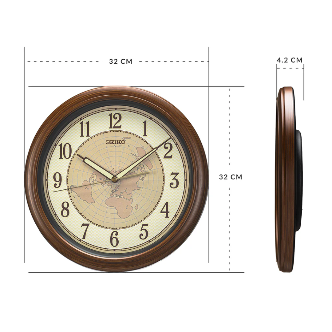 The Seiko QXA825B World Map Wall Clock brings global charm to your space with a luminous world map dial and quiet sweep second hand. Encased in a 32cm plastic frame, it’s designed for silent, stylish timekeeping. LumiBrite ensures readability even in low light, making it perfect for home offices, studies, or living rooms.