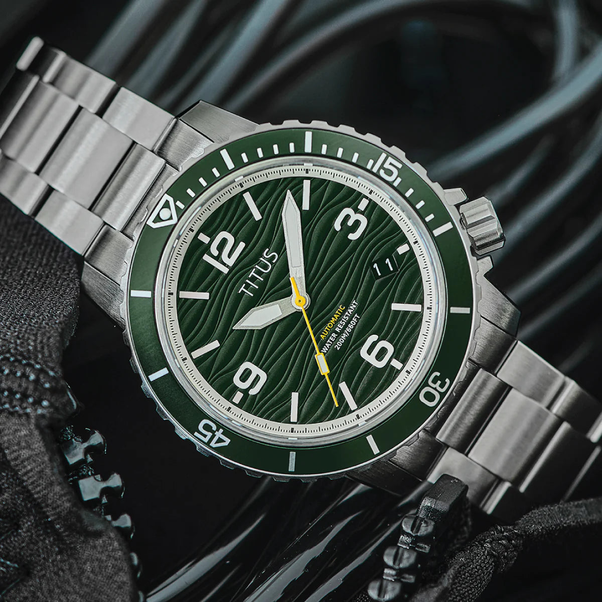 With an impressive 20 ATM water resistance, this watch is built to handle water sports, swimming, and recreational diving—without compromising on sophistication.