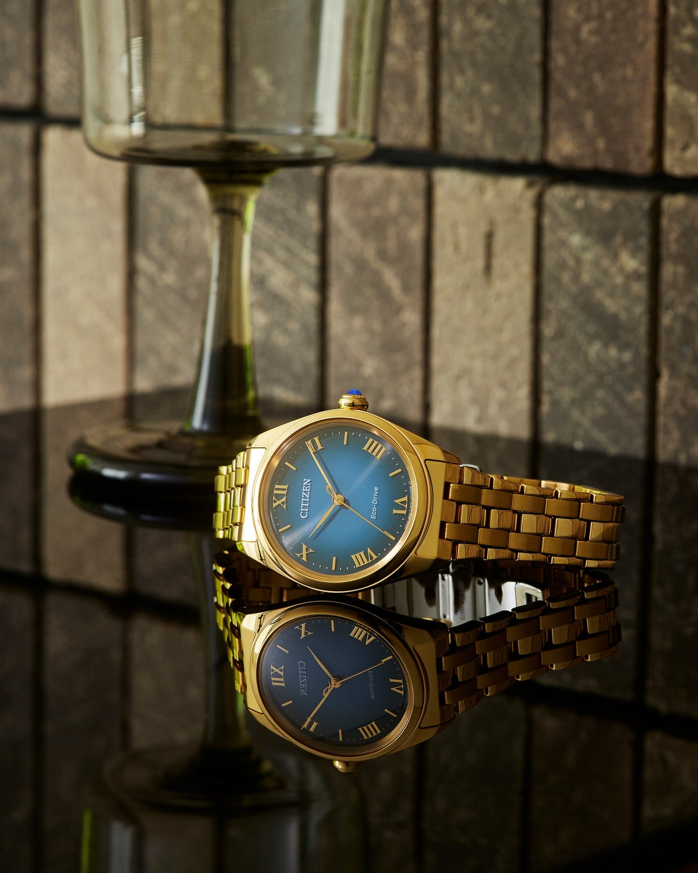 Experience elegance with modern minimalism with the Citizen L EM1142-84L, featuring refined blue dial under sapphire glass with Eco-Drive solar technology in 33mm gold-tone stainless steel case. This eco-friendly timepiece combines long-lasting battery-free performance with overcharge prevention and low-charge alerts—perfect for women who value sustainable sophistication with gold-tone elegance for refined styling.