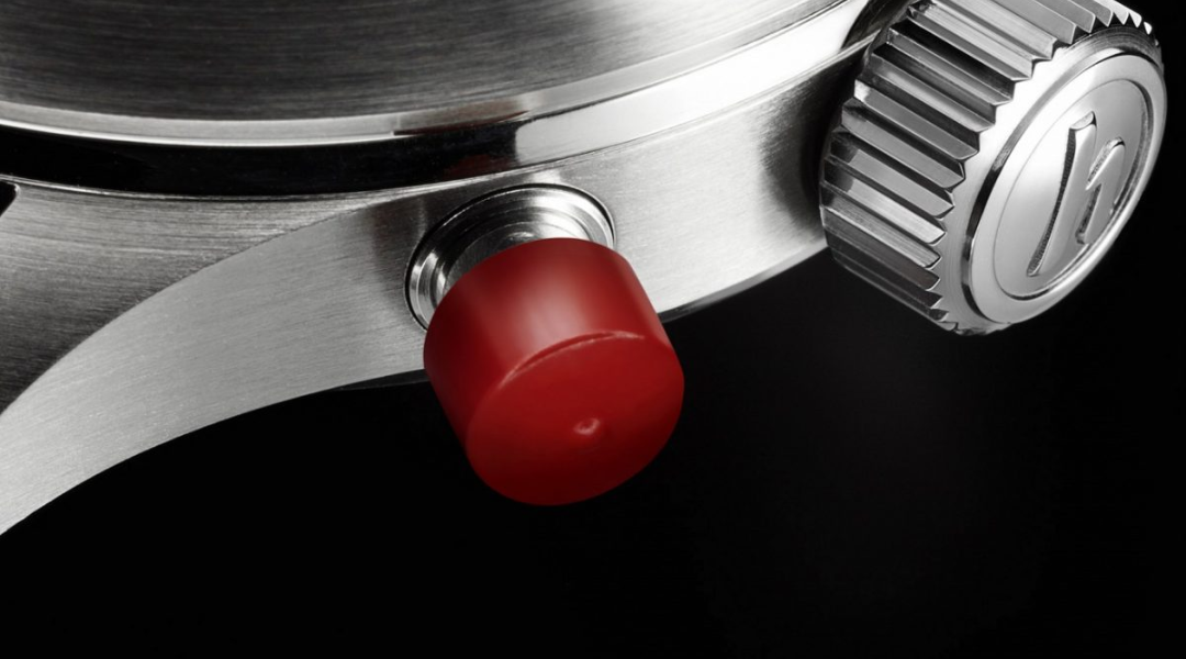 Among the typical Hanhart features such as the red button, the “bicompax” dial or the fluted bezel with a red marking, the single-button chronograph has been characteristic for Hanhart since the late 1930s. In order to realize the one-button chronograph, Hanhart has to change a part of the movement, which controls the complex chronograph circuitry and ensures the start, stop and reset function via one pusher rather than two pushers.