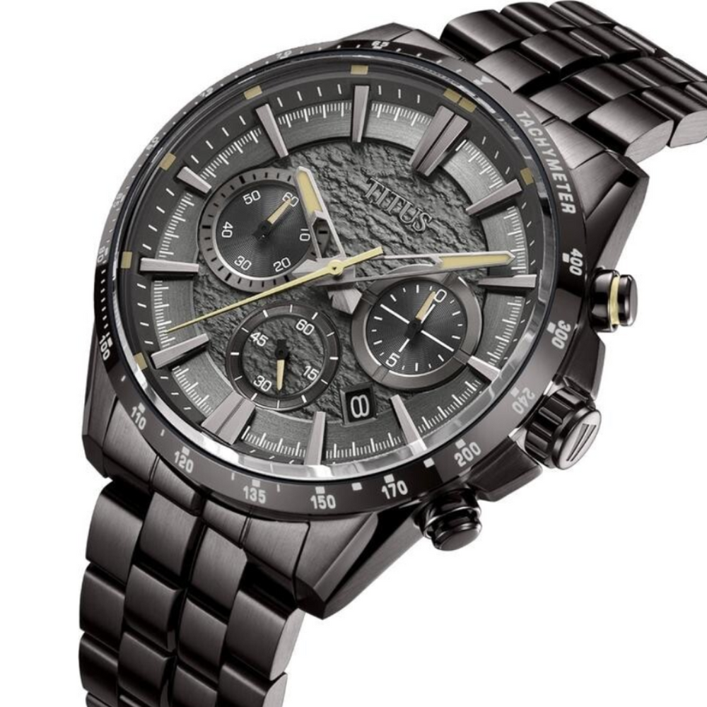 Channeling the spirit of the ancient saber-toothed tiger, the Solvil et Titus Saber W06-03337-010 is crafted for those who lead with strength and protect with purpose. This commanding chronograph features a 44.2mm 316L stainless steel case and a dark grey dial that evokes quiet power. Paired with a gun stainless steel bracelet, the watch delivers everyday performance with a quartz movement, chronograph functionality, and 10 ATM water resistance. A symbol of toughness and loyalty, this timepiece is the mark of a modern-day king.